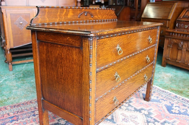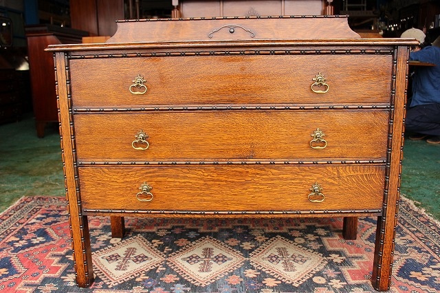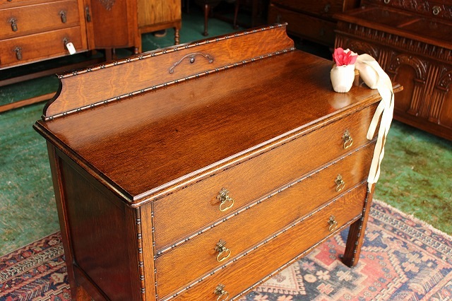 オーク総無垢材で重厚に作られた、美素敵な素敵なチェストです。お洒落なお部屋の演出にいかがですか |