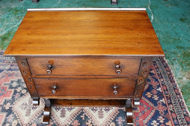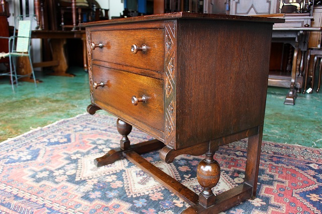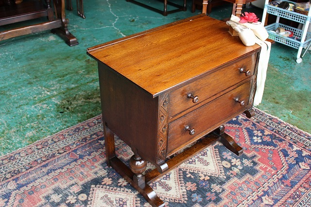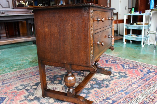 メンテナンス済みですのでガタツキなどは無く、引き出しの開閉もスムーズで、現状のまま普段にご使用頂けますが、未使用品ではございませんので、経年による使用傷、擦れなどあります。リアルアンティーク商品としてご理解下さい。又Webの性質上、実物と商品画像の色合いが多少異なる場合がございます。予めご了承ください。基本的には普段使い用のアンティーク1点物ですので、お気になります点は、お気軽にお問い合わせ下さい。(又追加写真ご希望の際は、お問い合わせメール、お電話にてお申し付け下さい。 |