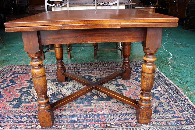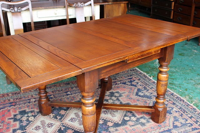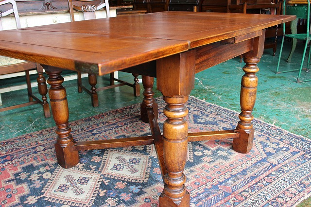 | 特徴 | 伸縮可能なため用途に合わせてサイズを変えることができ、大変便利に使用することができます。天板を引っ張り出せば大きく使える、重厚な作りの美しいドローリーフテーブルです。 憧れのイギリスアンティーク家具に包まれる、心安らぐ生活。リアルアンティーク独特の味のある商品をリーズナブルな価格でご提供致します。お洒落なお部屋の演出にいかがですか。 |