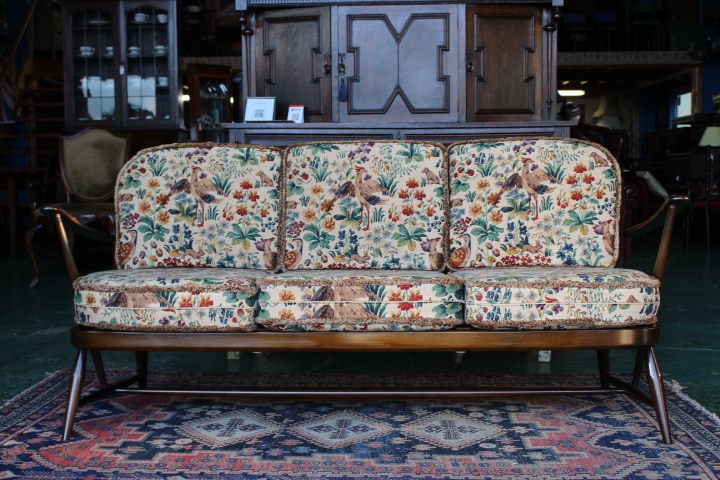 | 特徴 | 英国の老舗ブランドアーコール(ERCOL)の3人掛けソファです。スポンジクッションで座り心地が良くゆったりと腰掛けられます。 憧れのイギリスアンティーク家具に包まれる、心安らぐ生活。リアルアンティーク独特の味のある商品をリーズナブルな価格でご提供致します。お洒落なお部屋の演出にいかがですか。 |